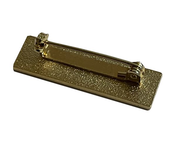 Size 35mm wide x 10mm deep, with a pin and safety clasp on the back.